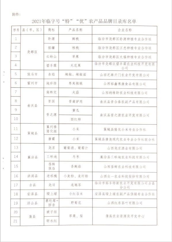 关于公布2021年度临字号“特”“优”农产品品牌目录库名单的通知